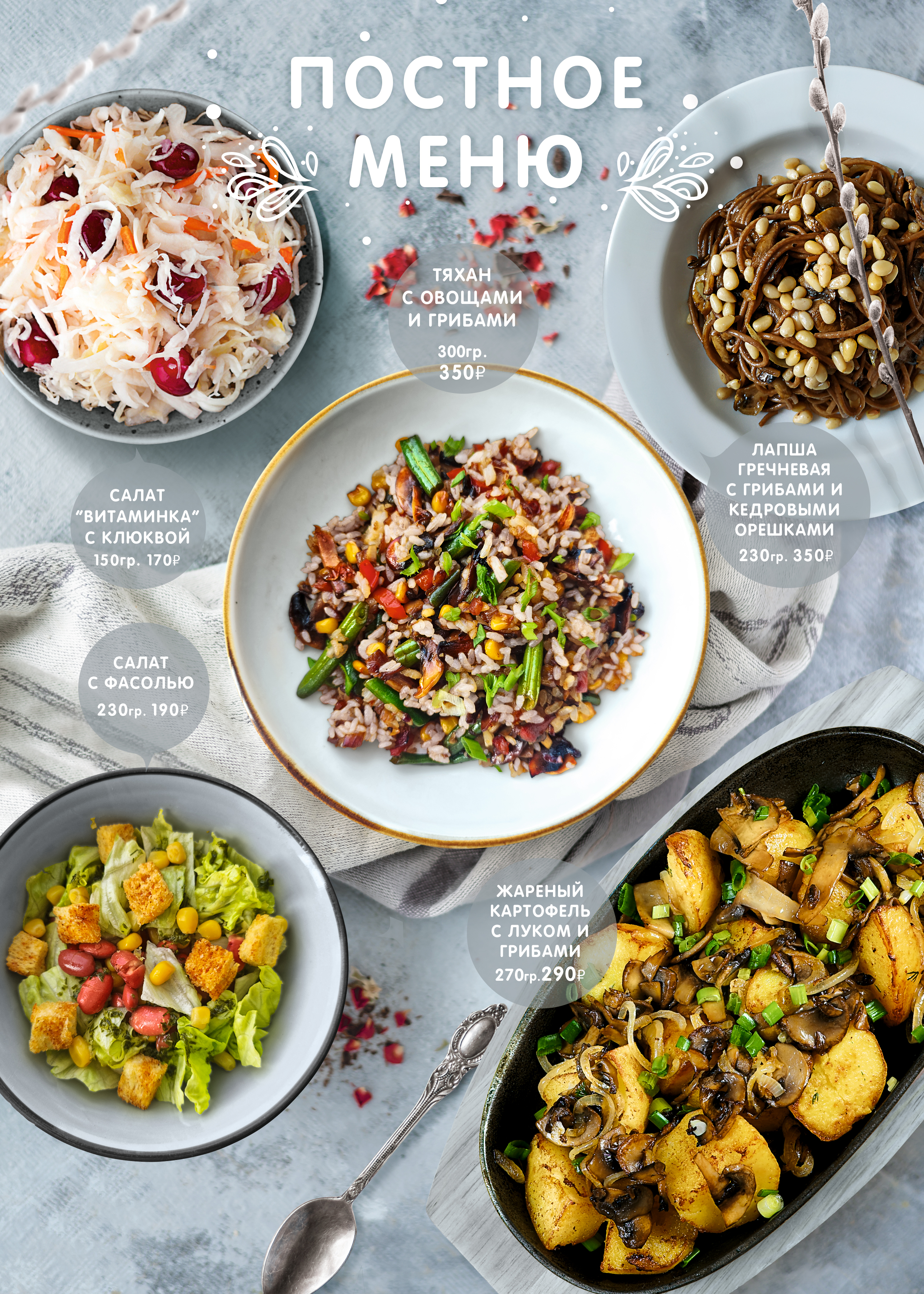 Постное меню — всегда простое, понятное и не перегруженное. В Пан Пицце именно такое меню приготовил шеф-повар к началу Великого Поста. В нем большое количество сезонных овощей, зелени, грибов и круп. Все блюда легкие и отлично сочетаются между собой.